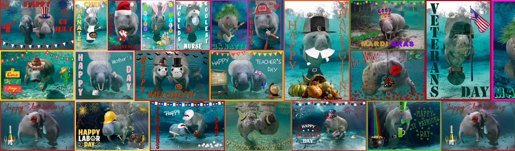 With such a wide variety of generic Manatee themed apparel on the market, we were inspired to combine our talents to create a collection of fun & festive one-of-a-kind designs that stand out from the crowd. Dave is the photographer and he has been taking photos of our gentle giants for many years. Tina, that's me, is the graphic designer who created the designs. I hope you enjoy the fun images as much as we do, and realize that you have to have one of these for yourself! They make great gifts too!